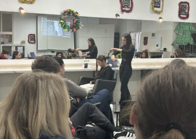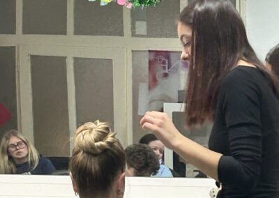 Naša bivša učenica Sara Juras, koja je maturirala prošle školske godine, ponovno je posjetila školu i održala inspirativno predavanje te praktičnu demonstraciju za naše učenike. U razdoblju nakon mature Sara je kontinuirano pohađala razne edukacije i usavršavala svoje vještine, što planira nastaviti i u budućnosti.