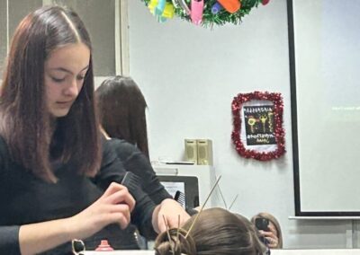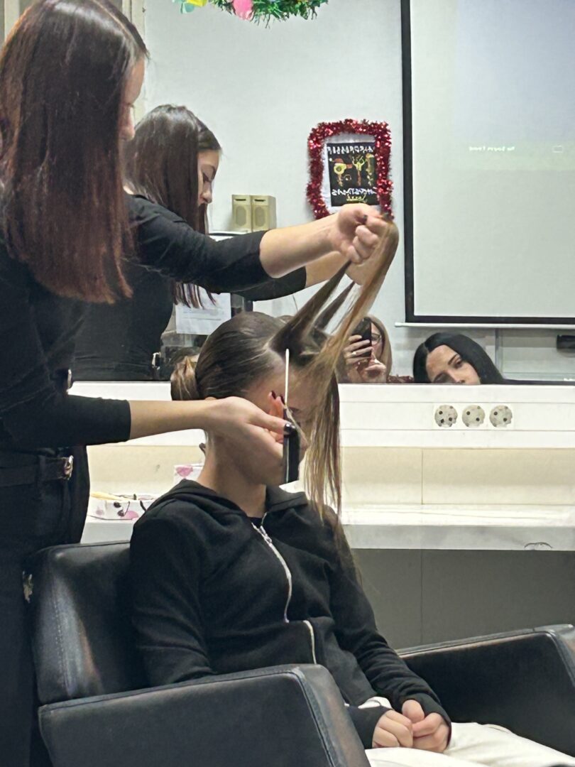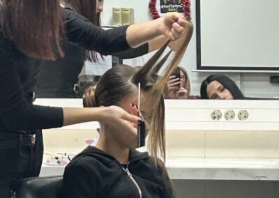 U praktičnom dijelu susreta Sara je svoje zadovoljstvo školovanjem u našoj školi pokazala izradom jedne večernje i jedne svečane frizure, čime je oduševila učenike. Na kraju radionice učenici su izrazili želju da je ponovno ugostimo, posebno na radionici izrade pletenica s umetcima, zbog čega će škola ostvariti daljnju suradnju sa Sarom.