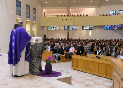 Govoreći maturantima, upozorio je na izazove današnjeg vremena u kojem dominira površnost i usmjerenost na materijalno i izvanjsko. Istaknuo je važnost građenja života na temeljima neprolaznih vrijednosti i Bogu koji jedini daje radost, smisao i sigurnu budućnost.