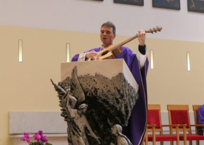 Nakon misnog slavlja maturanti su imali priliku poslušati svjedočanstvo mladog svećenika don Antuna Mate Antunovića koji im je govorio o svojoj potrazi za životnim smislom koji je u konačnici pronašao u svećeničkom pozivu. Naglasio je da odgovori na najdublja životna pitanja ne dolaze odmah, nego kroz iskreno traganje i otvorenost. Potaknuo ih je da se u svojem traganju za smislom othrvaju napastima suvremenih ovisnosti i da biraju ono što vodi istinskom dobru i punini života.